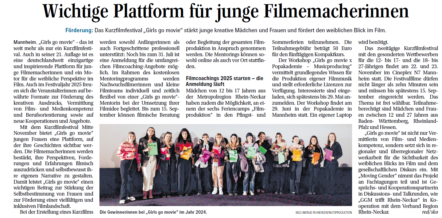 GIRLS GO MOVIE - Geschichten aus Baden-Württemberg - Mannheimer Morgen Juni 2025