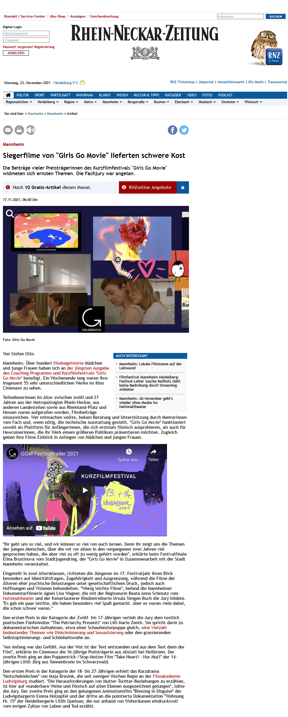 Siegerfilme lieferten schwere Kost – Rhein Neckar Zeitung November 2021